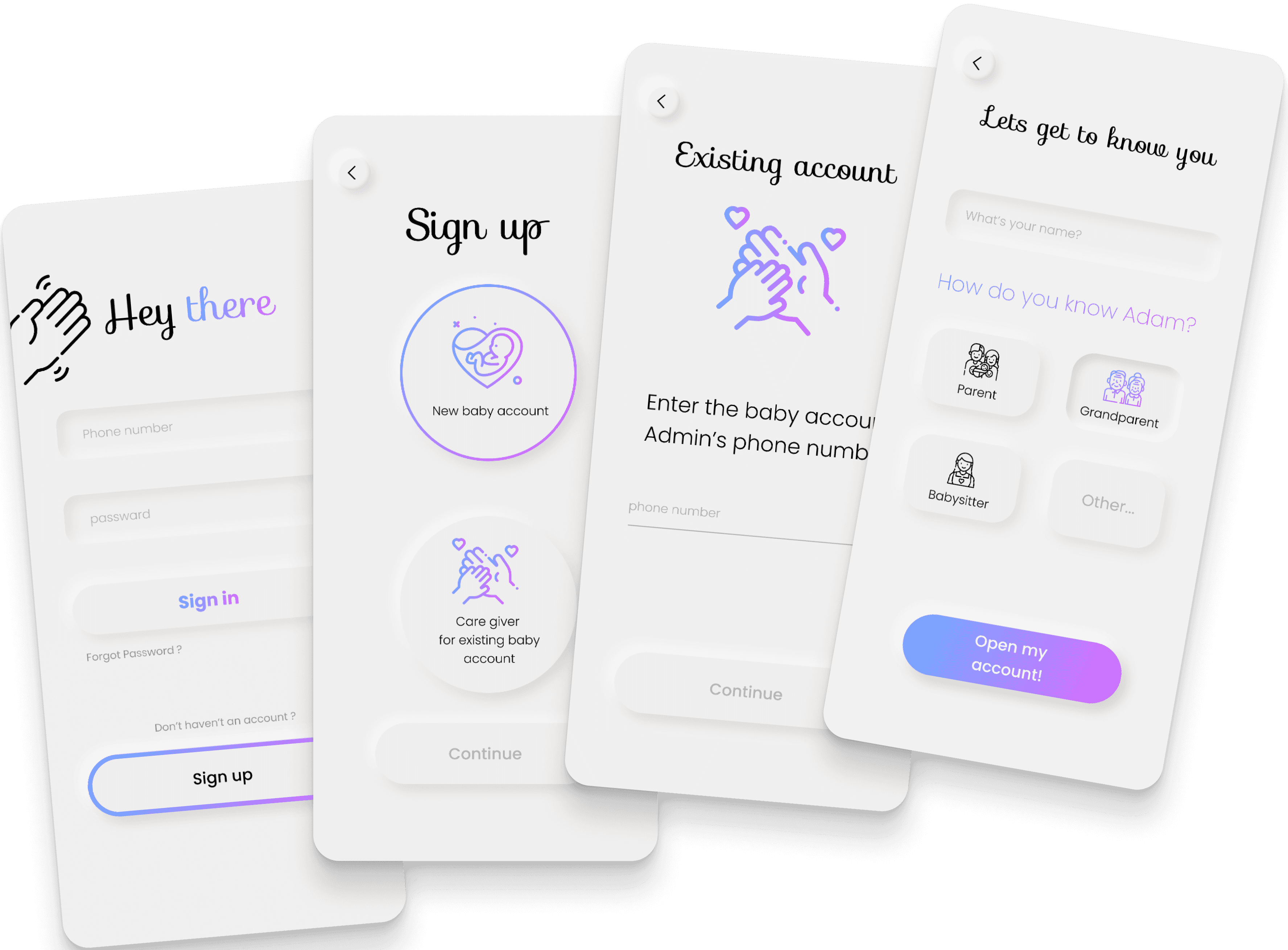 Care giver for an existing baby account